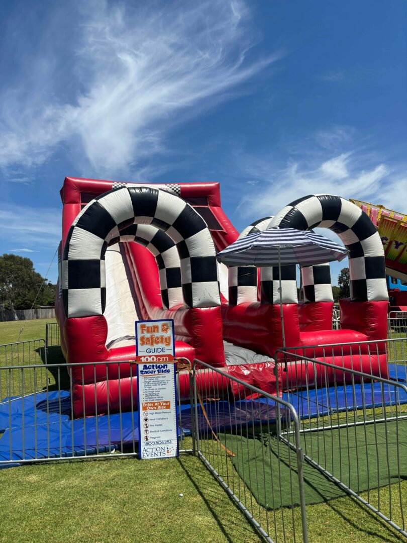 Challenge your bestie to a race down the Dual Action Racer Slide! Perfect for any event, this Inflatable slide lets you zoom side by side for an epic ride. Hold on tight and let the race begin – who will reach the bottom first?